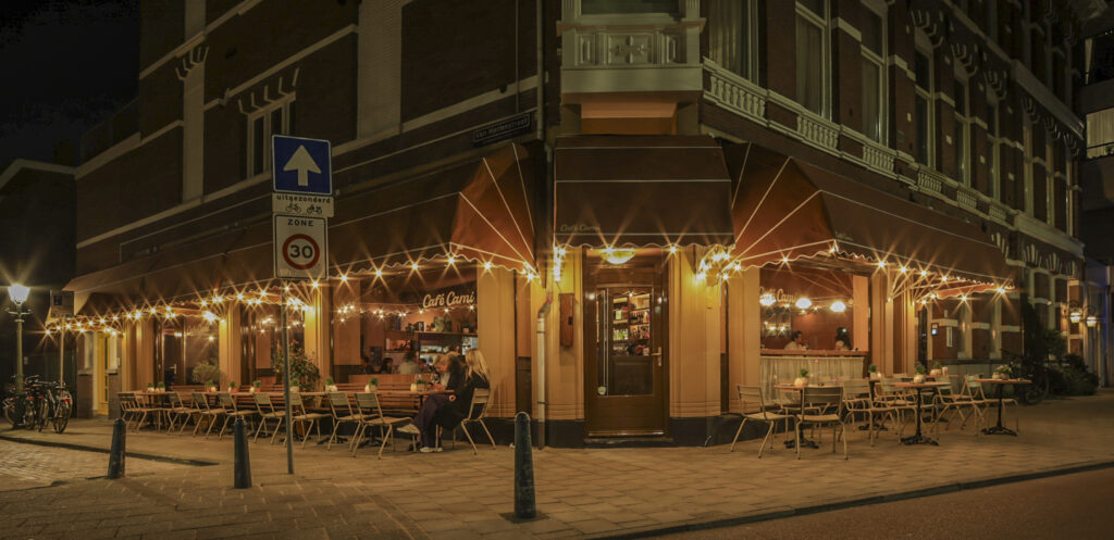 Café Cami is een resturant vlak naast het Koningsplein in Den Haag. Cami is een beetje thuis, een beetje anders, maar altijd welkom. Het is de plek waar avonden blijven hangen, waar een glas wijn altijd op het juiste moment wordt bijgeschonken en smaken vertrouwd maar verrassend zijn. Of je nu even binnenwandelt of blijft voor een lange avond, je merkt hoe de tijd hier moeiteloos verdwijnt.