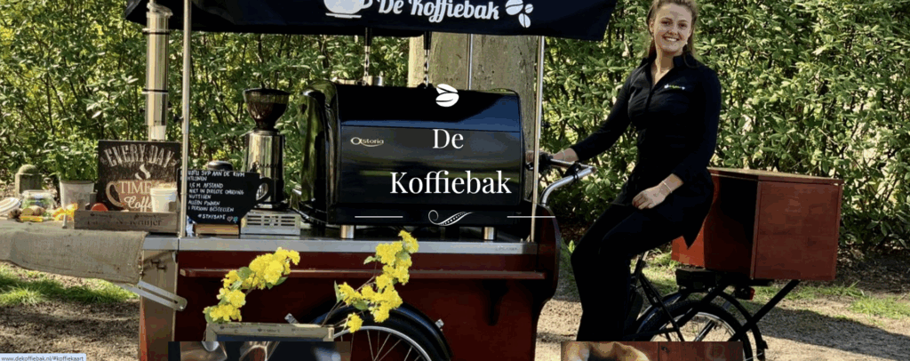 De Koffiebak is een mobiele koffiekar, bestuurd door eigenaresse Madelief. Je kunt bij haar terecht voor een echte koffiesensatie op events of privegelegenheden. Na een aantal jaren is De Koffiebak niet meer weg te denken op events in Nederland en zelfs in België. Bekijk de pagina’s met leuke foto’s en video’s en kijk of De Koffiebak ook bij uw gelegenheid de ‘eyecatcher’ wordt.